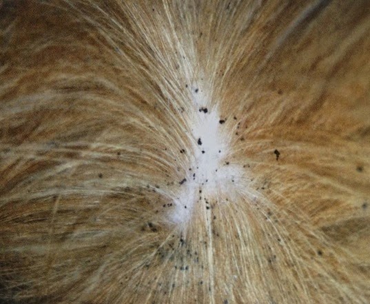 - Acari della rogna rossa: sono quasi sempre presenti, seppure in quantità minima, nei follicoli piliferi dei vari cani. A causa del sistema immunitario non ancora sviluppato del cane attivano una risposta molto forte, che porta a perdita di pelo, seborrea, ispessimento della cute (e suo arrossamento), produzione di sostanze oleose e maleodoranti della cute stessa.