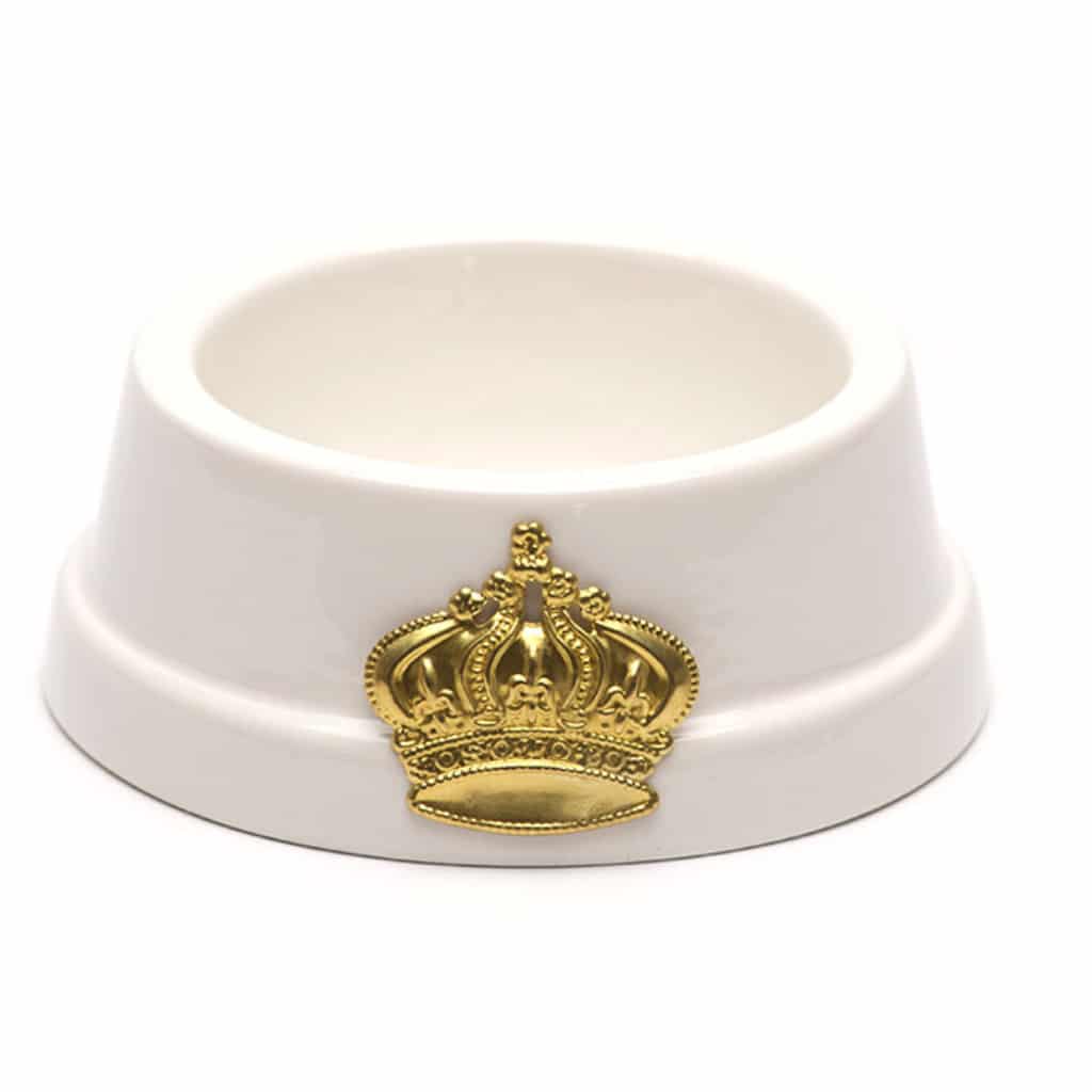 Ciotola per cani in ceramica con applicazione a corona.