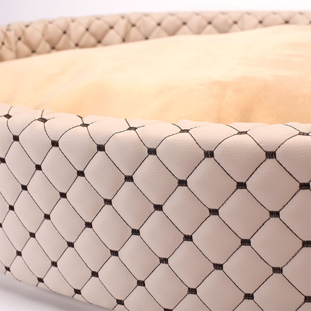 Le nostre cucce per interno di lusso sono completamente sfoderabili e quindi facilmente lavabili; l’ecopelle, permette di igienizzare quotidianamente le cucce per eliminare peli, residui di sporco e di cibo in modo da far riposare il tuo amico peloso in una cuccia sempre pulita e profumata.