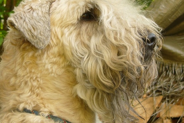 shading on base of ear allowed and not uncommon, accompanied by a light wheaten coloured overlay. This is the only area of the dog where under-coat is allowed. "Rose" or "flying" ears are objectionable