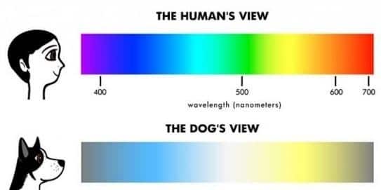 Non solo! I colori per i cani sono meno vividi rispetto a quelli che vediamo noi.